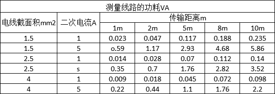 表1 電流互感器測(cè)量回路的功耗